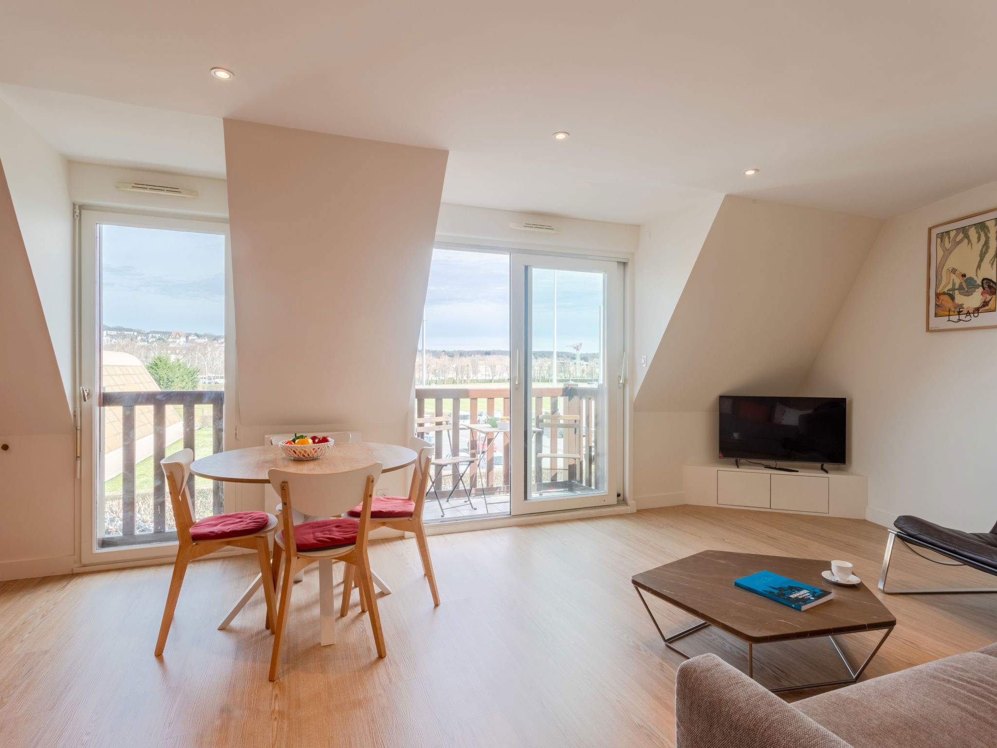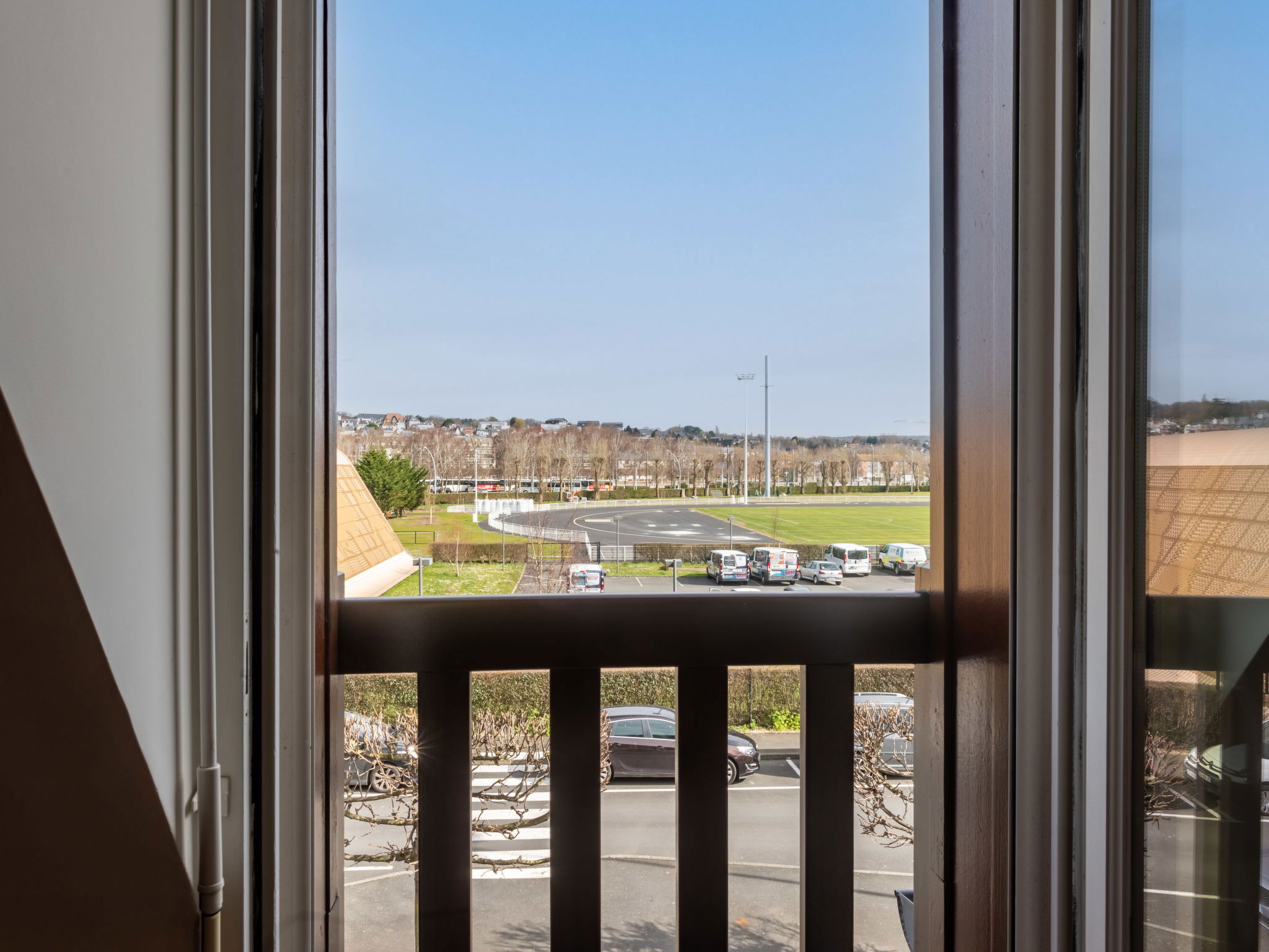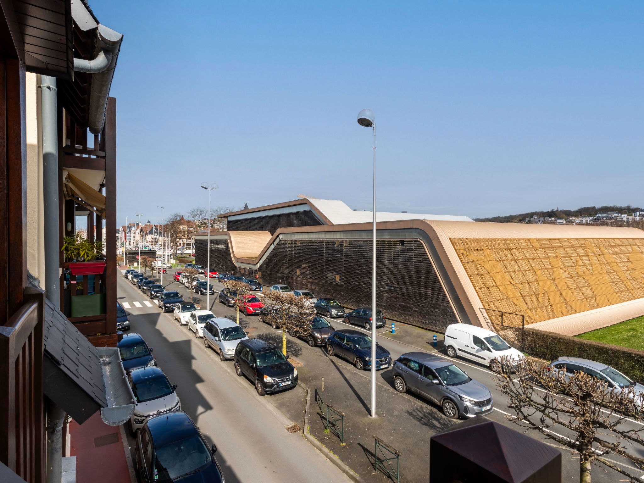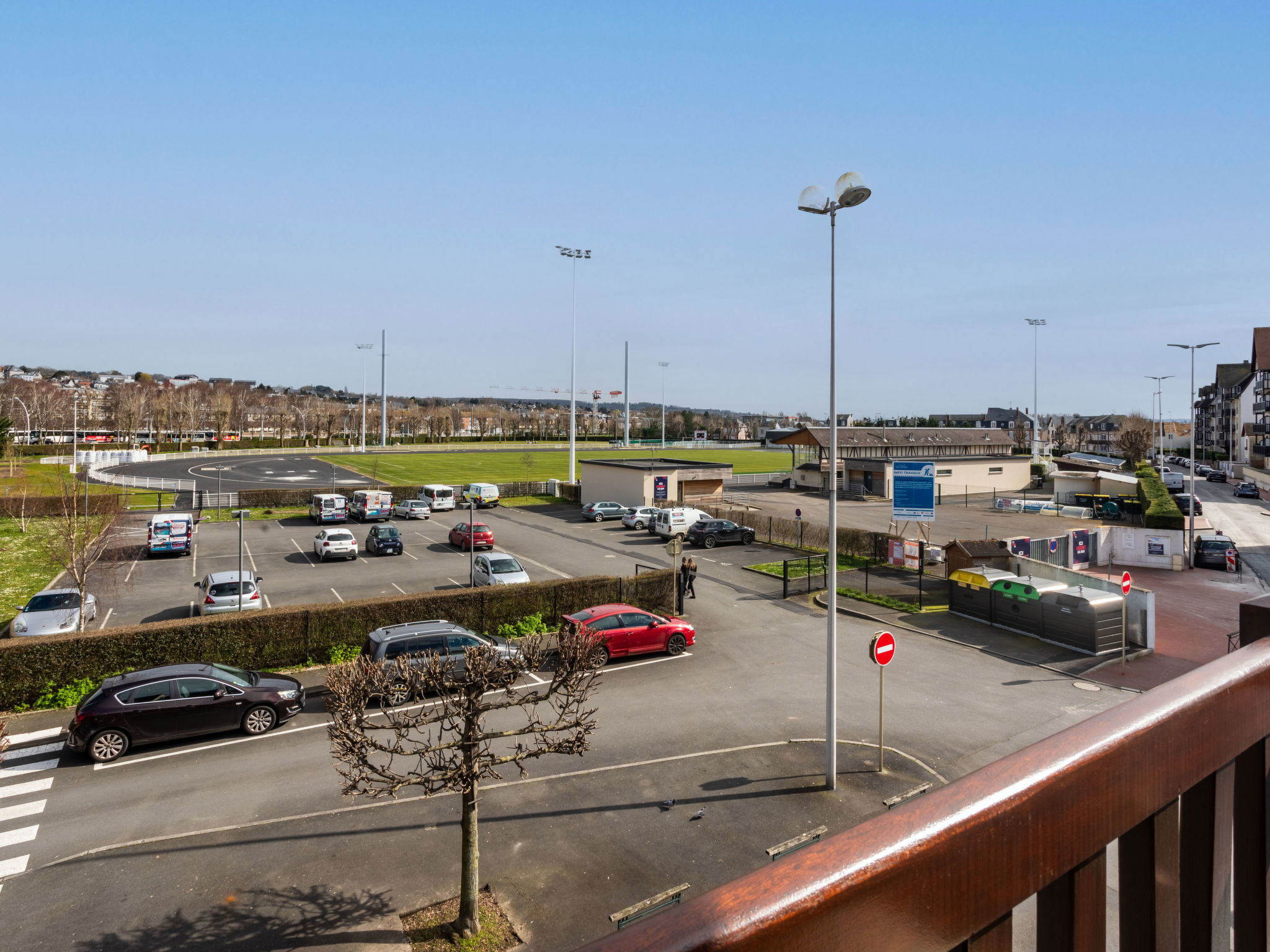 Deauville: Résidence "Le Carrousel des Sports", de 3 étages. Dans la localité, à 1.2 km de la mer, à 1.2 km de la plage, orientée est. Infrastructures de la Maison: ascenseur. Magasin d'alimentation 500 m, supermarché 2.4 km, centre à 5 minutes à pieds, arrêt de bus "Gare routière" 300 m, gare ferroviaire "Deauville-Trouville" 300 m. Attractions à proximité: Yacht Club Deauville 500 m, Centre International Deauville - CID 1.9 km, Hippodrome Deauville - La Touques 1.3 km, Plage du Débarquement d'Arromanches 94 m, Honfleur 16 m. La remise des clés a lieu à l’agence de Deauville.