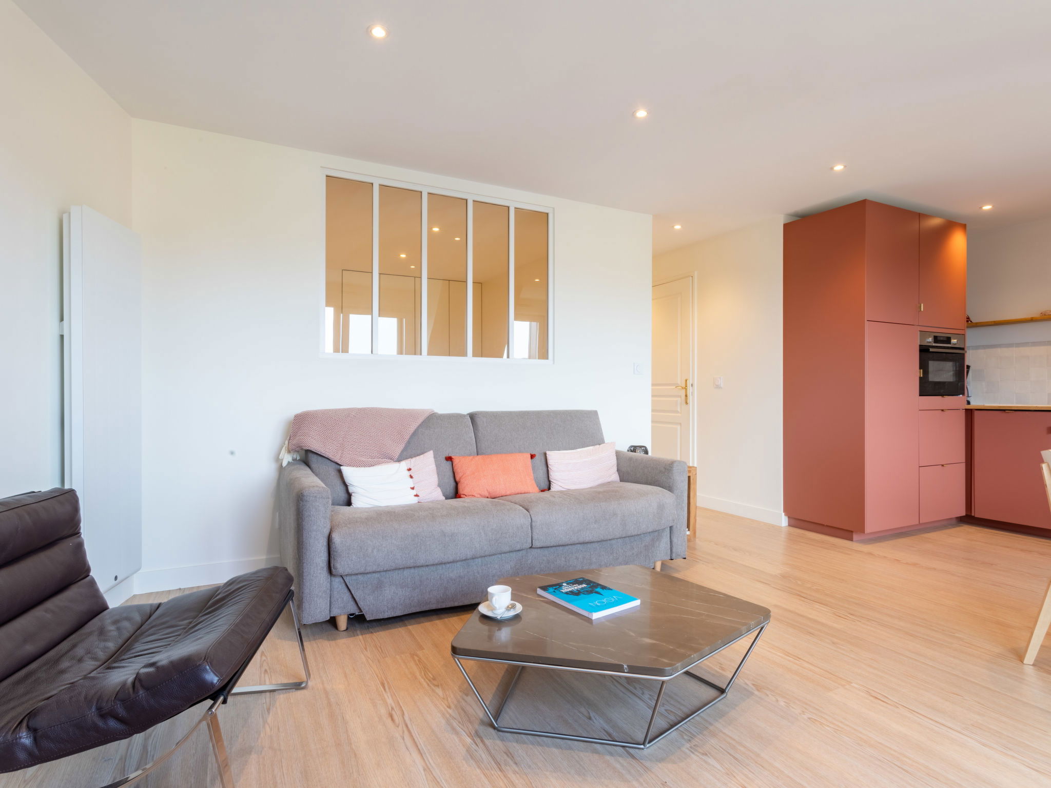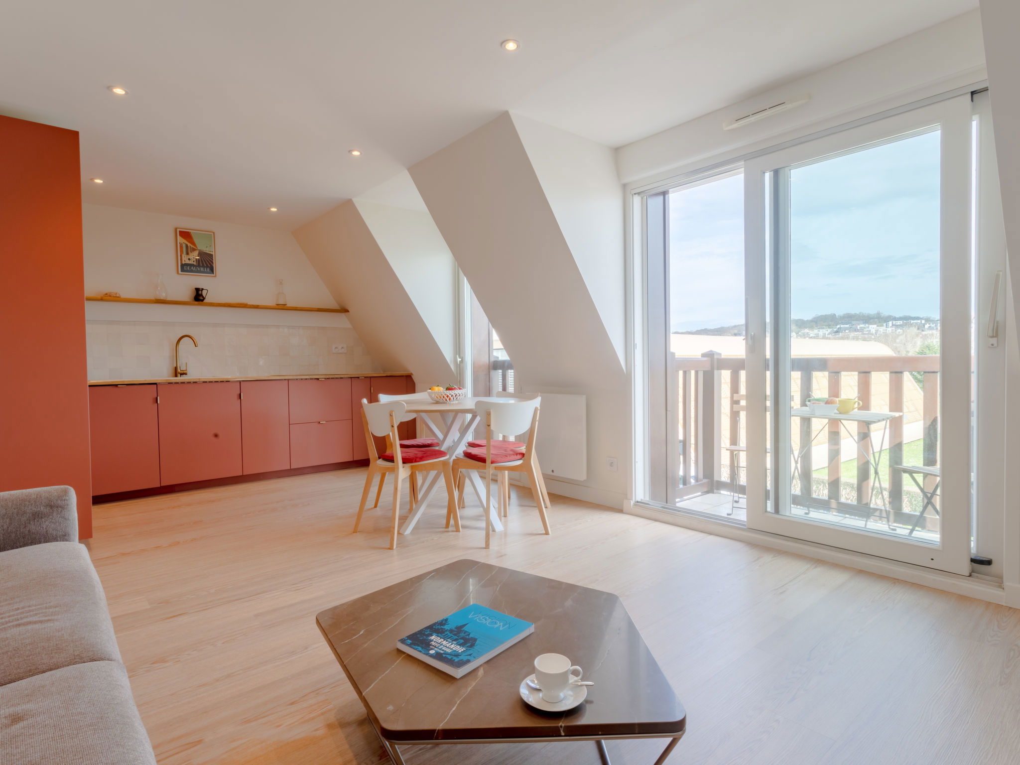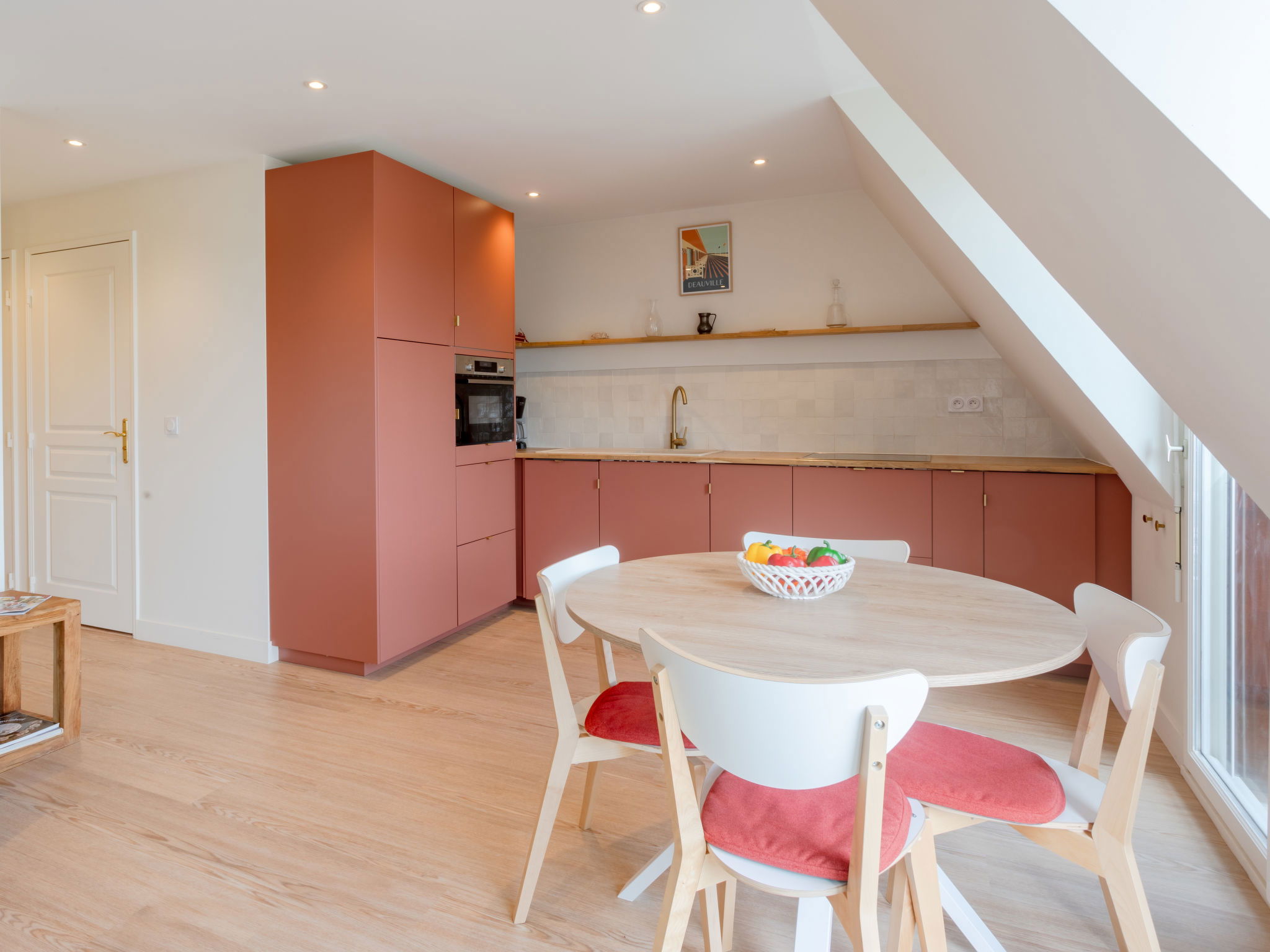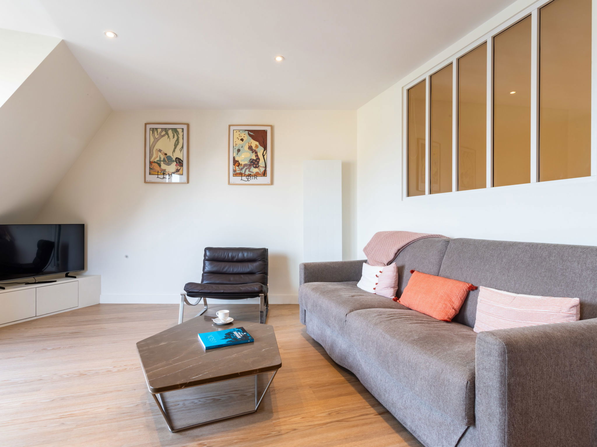 Deauville: Résidence "Le Carrousel des Sports", de 3 étages. Dans la localité, à 1.2 km de la mer, à 1.2 km de la plage, orientée est. Infrastructures de la Maison: ascenseur. Magasin d'alimentation 500 m, supermarché 2.4 km, centre à 5 minutes à pieds, arrêt de bus "Gare routière" 300 m, gare ferroviaire "Deauville-Trouville" 300 m. Attractions à proximité: Yacht Club Deauville 500 m, Centre International Deauville - CID 1.9 km, Hippodrome Deauville - La Touques 1.3 km, Plage du Débarquement d'Arromanches 94 m, Honfleur 16 m. La remise des clés a lieu à l’agence de Deauville.