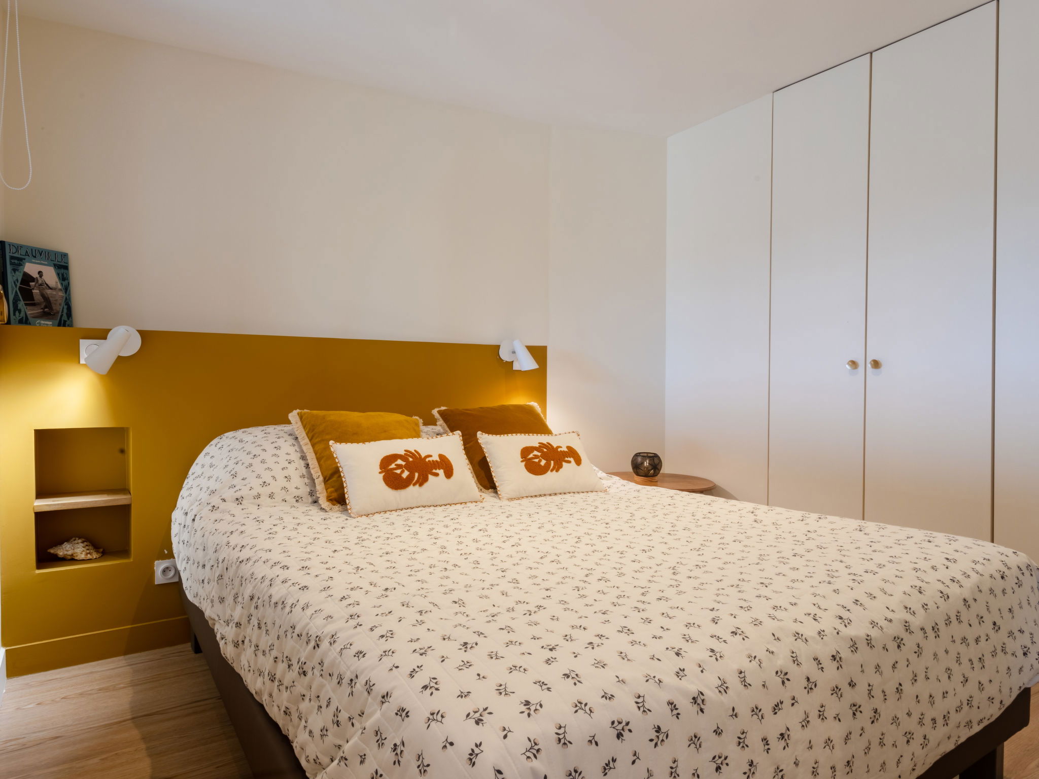 "Le Carrousel des Sports", Appartement de 2 pièces 42 m2 au 2ème étage, situation est. Complètement rénové en 2023: entrée. Séjour/salle à manger avec 1 divan-lit double (160 cm, longueur 190 cm), TV (écran plat). Sortie sur le balcon, orientée est. 1 chambre avec 1 lit double (160 cm, longueur 190 cm). Cuisine ouverte (four, lave-vaisselle, 3 plaques vitrocéramiques, bouilloire électrique, cafetière électrique). Sortie sur le balcon, orientée est. Douche, WC séparé. Chauffage électrique. Petit balcon 2 m2, situation est, petit balcon 1 m2, situation est. Vue sur les alentours. A disposition: Internet (Connexion WIFI, gratuit). Place de parking No 17 (couvert, 1 Voiture), hauteur 200 cm, largeur 230 cm. Veuillez noter: logement non-fumeur. Détecteur de fumée. Annonce d'un particulier (art 155, IV du CGI). 14220000125KB