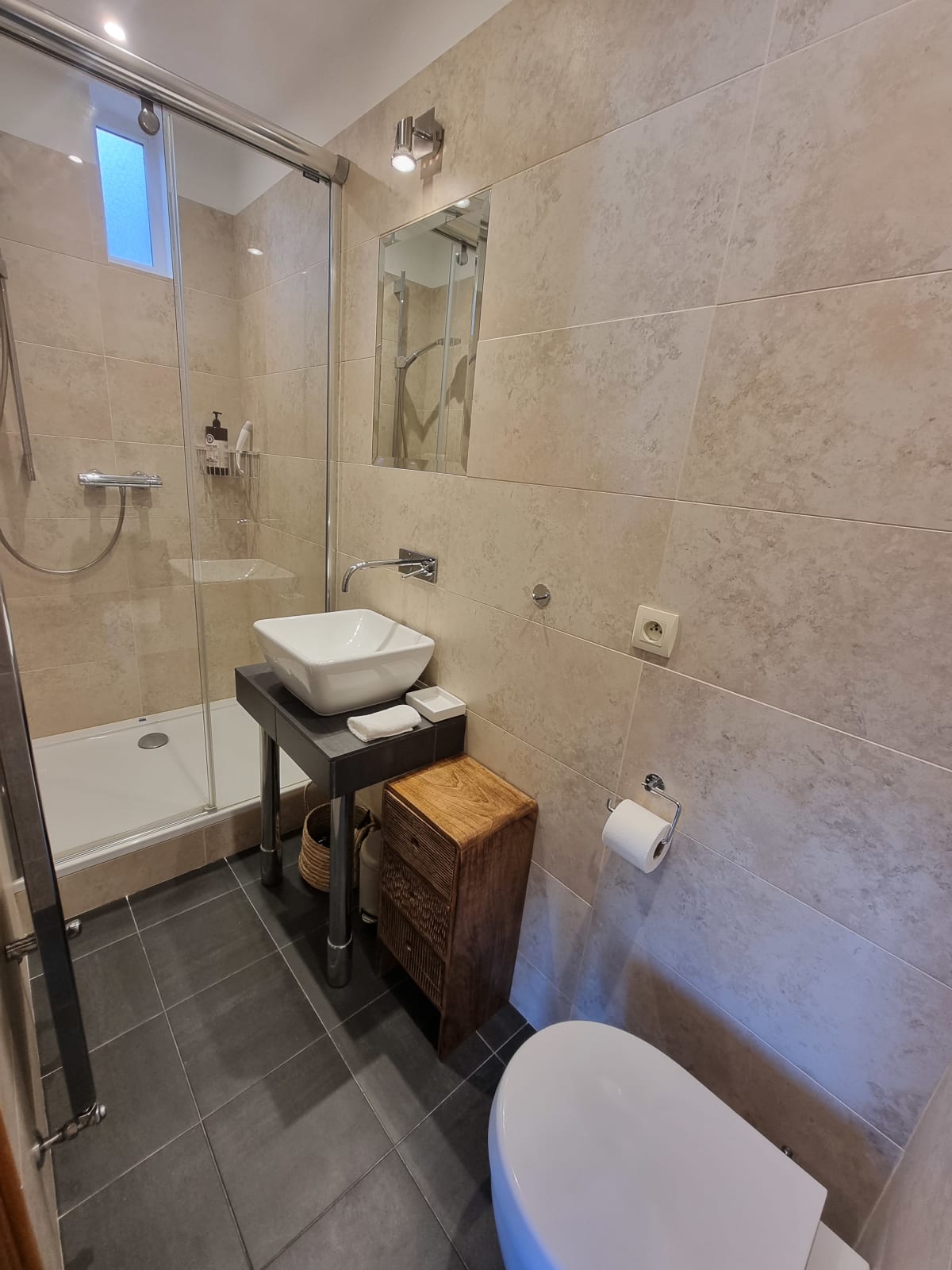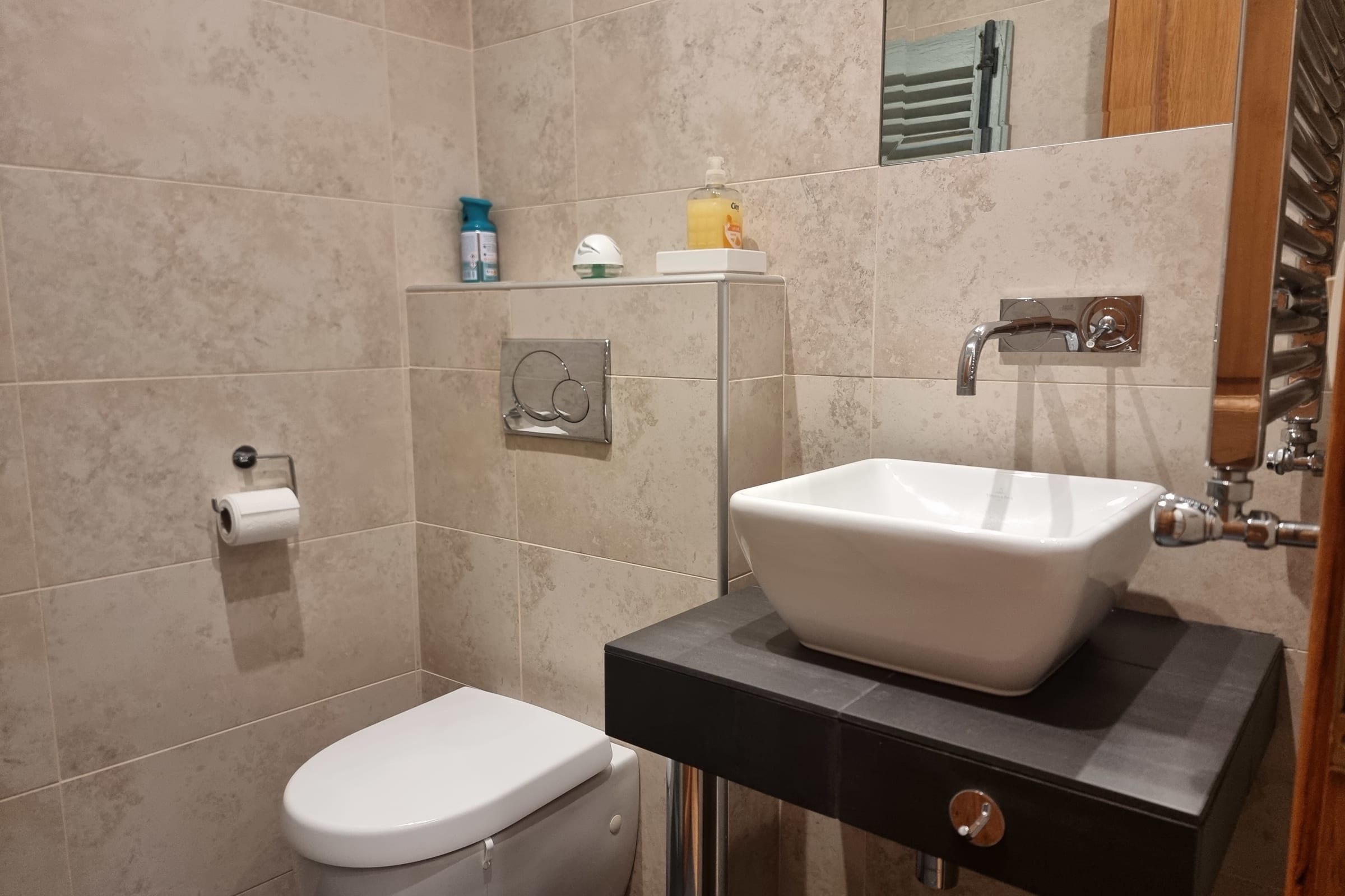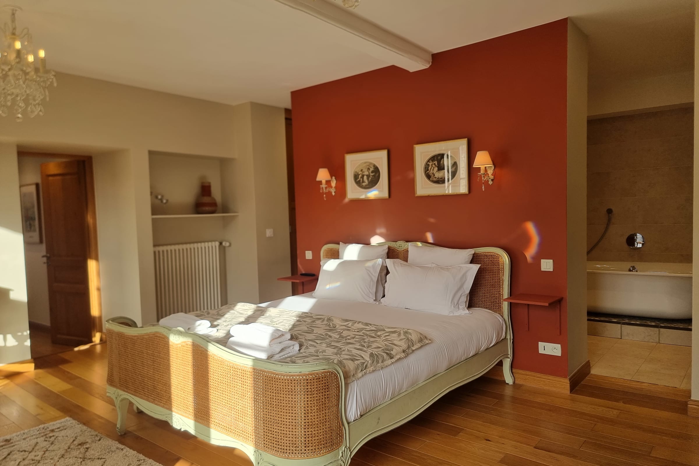 L’ambiance intérieure est chaleureuse, raffinée et harmonieuse. L’appartement dispose de deux chambres confortables. La chambre principale propose une literie douillette 180 x 200 cm et une TV pour des moments de détente. La seconde chambre bénéficie d’un lit très confortable 160 x 200 cm et d’une charmante vue. Chacune dispose de sa salle de bains attenante avec WC intégré. Un troisième WC invité est également à votre disposition.