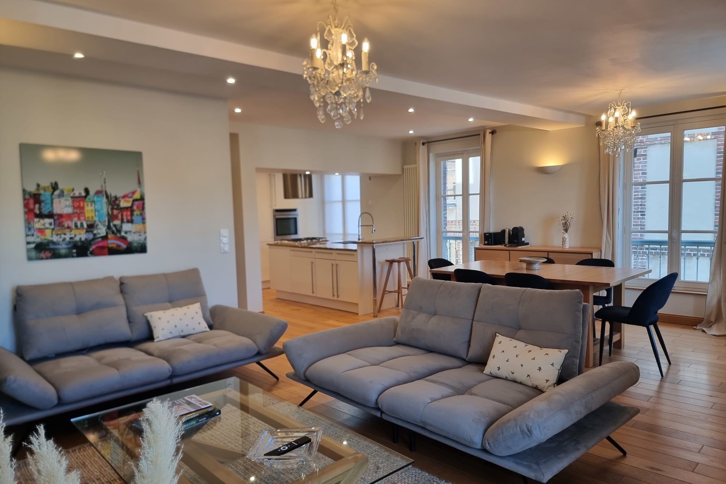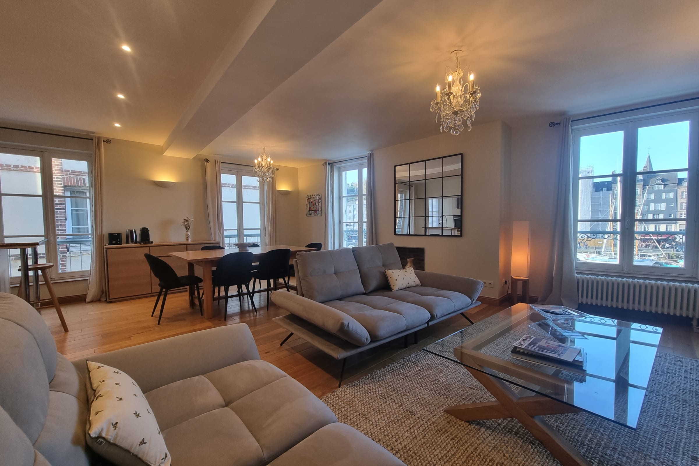 Bienvenue à Lily Bay, un appartement d’exception de 95 m2 situé au deuxième étage, au coeur du centre historique et littéralement sur le port de Honfleur. À seulement quelques mètres du Vieux Bassin, il fait partie des très rares logements à offrir ce niveau d’espace, cette hauteur sous plafond et une vue aussi spectaculaire.