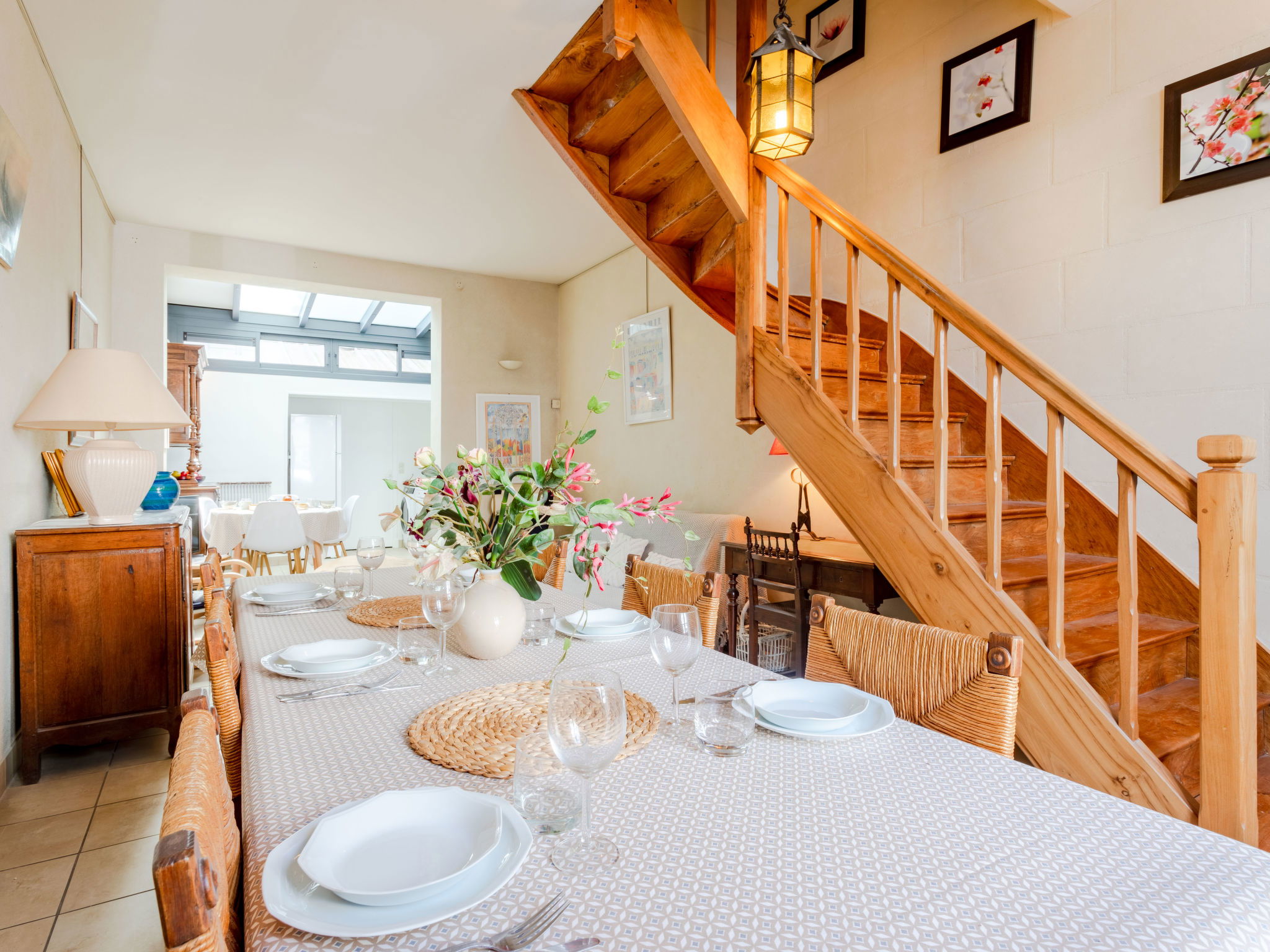 "Gambetta", maison mitoyenne 5 pièces 90 m2 sur 3 niveaux, situation ouest. Séjour/salle à manger avec TV (écran plat). Cuisine ouverte (four, lave-vaisselle, 3 plaques à induction, grille-pain, bouilloire électrique, micro-ondes, congélateur, cafetière électrique). Douche/WC. À l'étage supérieur: 1 chambre avec 1 lit double (160 cm, longueur 200 cm). 1 chambre avec 1 lit (130 cm, longueur 190 cm). WC séparé. 2ème étage: 1 chambre avec 1 lit double (140 cm, longueur 190 cm). 1 chambre avec 1 lit (90 cm, longueur 190 cm). Douche/WC. Chauffage au gaz. A disposition: lave-linge, sèche-linge. Internet (Connexion WIFI, gratuit). Garage à 400 m, hauteur 245 cm, largeur 230 cm. Veuillez noter: logement non-fumeur. Détecteur de fumée, sans ascenseur. Annonce d'un particulier (art 155, IV du CGI). 14220001433G1
