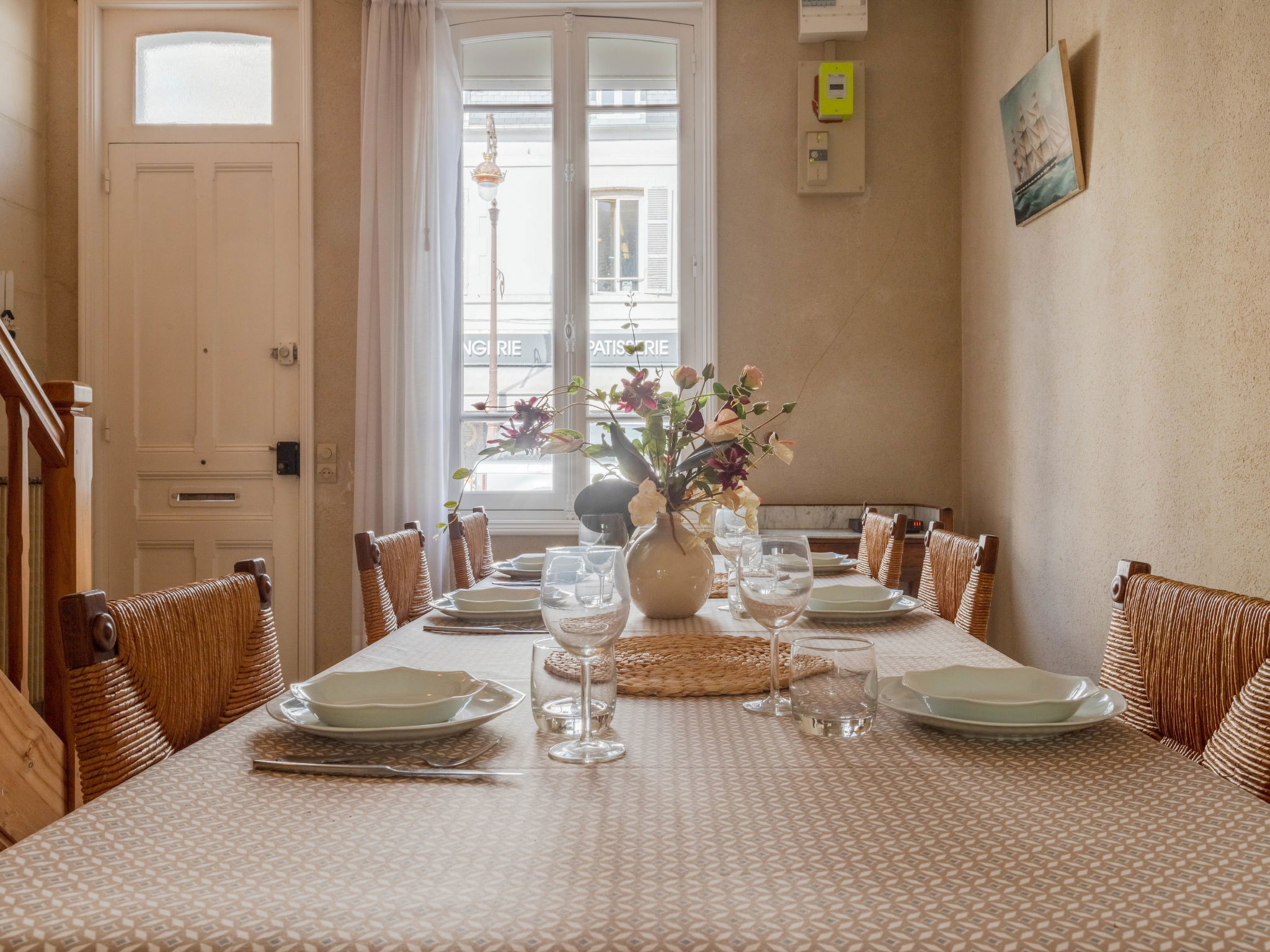 Deauville: Maison mitoyenne "Gambetta", de 3 étages. Au centre de Deauville, à 900 m de la mer, à 900 m de la plage. Magasin d'alimentation 110 m, supermarché 2.7 km, restaurant 3 m, arrêt de bus "Deauville Art Station" 350 m, gare ferroviaire "Deauville-Trouville" 650 m, piscine couverte 450 m, centre thermal "Deauville" 1 km. Attractions à proximité: Hippodrome Deauville-La Touques 1 km, Centre International Deauville - CID 800 m, Mémorial de Caen 54 km, Plage du débarquement d'Arromanches 85 km. La remise des clés a lieu à l’agence de Deauville.